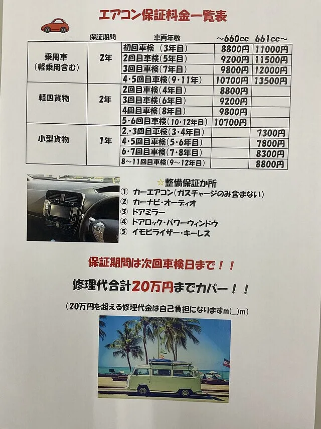 なんじぃ車検時に入れるエアコン修理保証!
