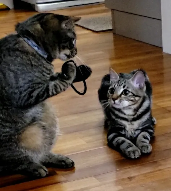 動物病院に連れて行きオス猫だった!「むぎ」とは馴染んだが