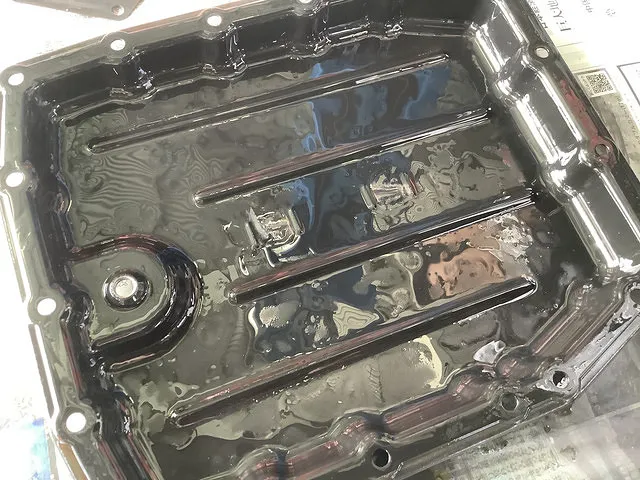 鉄粉で汚れたオイルパンをキレイに清掃します。
