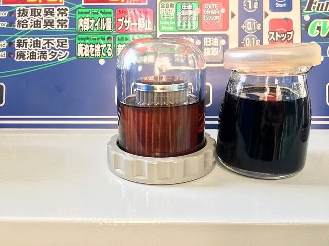 写真左側から新油(ホンダ純正HMMF)☆新油モニター