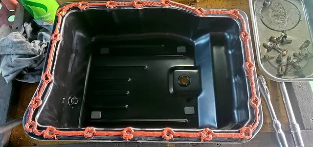 オイルパンの取付けはシールガスケットを塗布して取付けます。