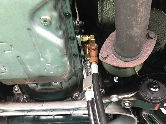 最後にフルード量のチェックですが夏で暑いのでフルードの温度が下がらないのでスポットクーラーで強制的にミッションを冷やしました。