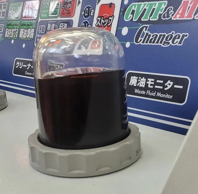純正CVTフルードはグリーン色!廃油モニターは真っ黒です。