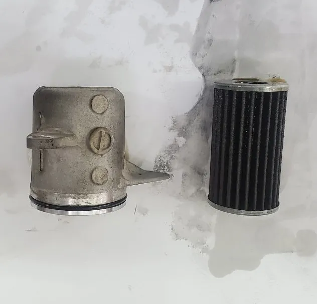 写真左側は鉄粉で真っ黒に汚れたストレーナーです。