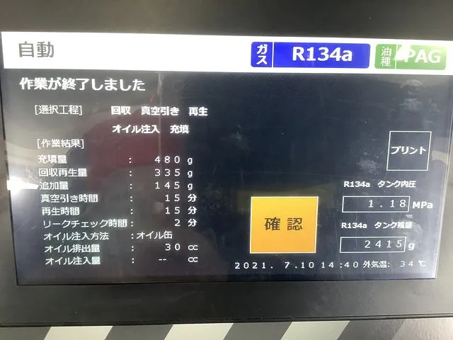 ①現車のクーラーガス回収⇒