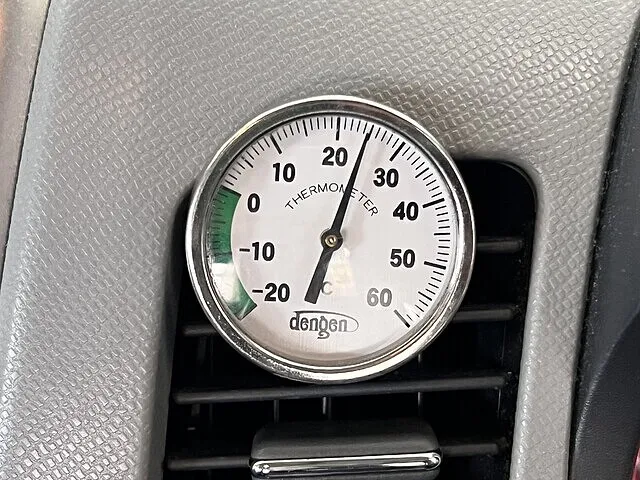 車止めてこの温度!走ればコンデンサーが冷やされるので