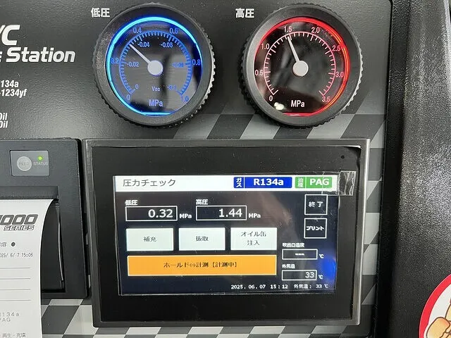 低圧・高圧ともに高い数値です!コンデンサーファンの作動は良好!