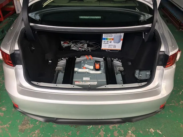 この車のハイブリッドバッテリーはトランクルームにあります。